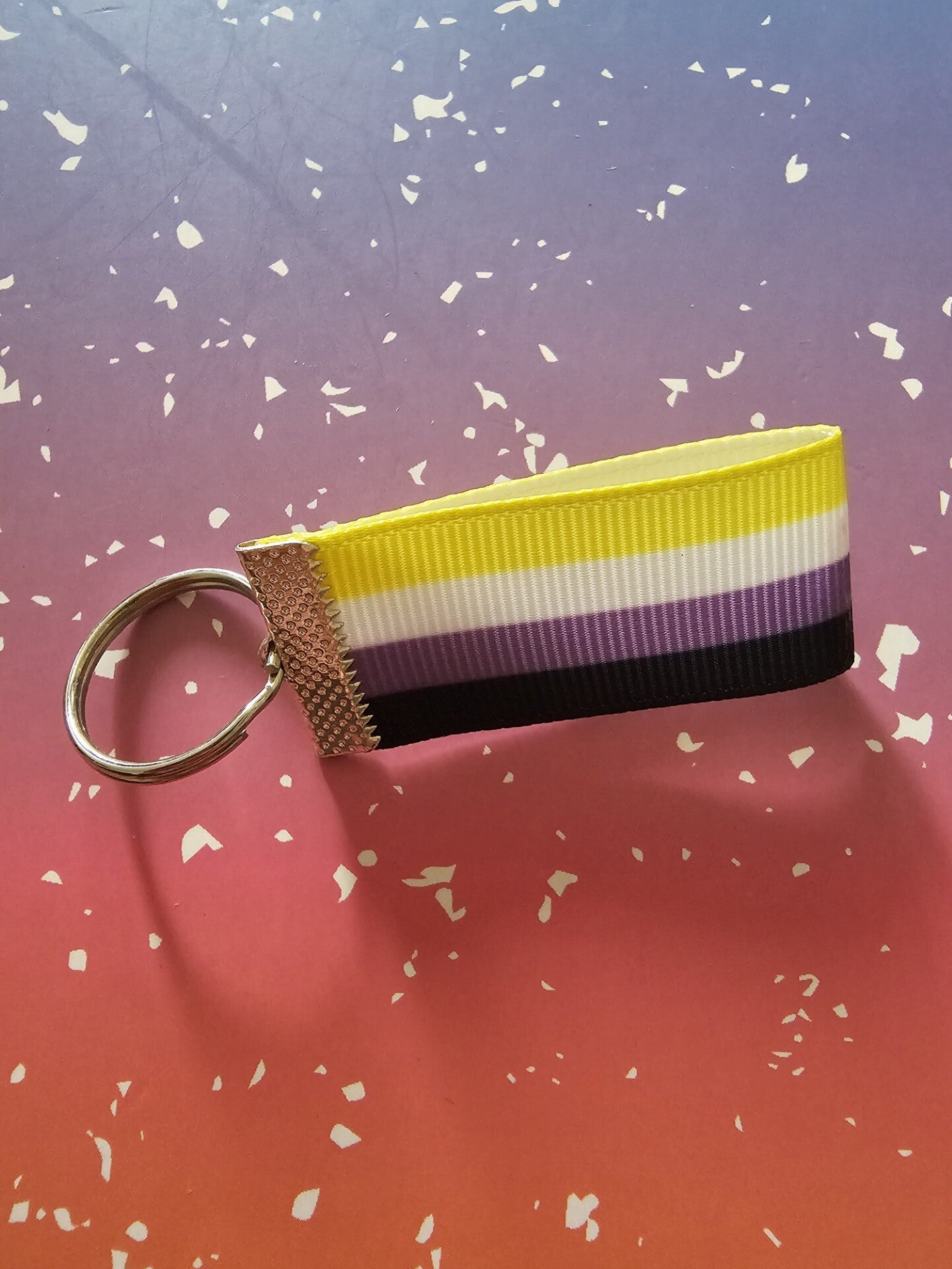 A little splash of pride you can carry everywhere. Handmade from ribbon in your chosen pride flag design, this keyring adds colour, character, and a touch of playfulness to your everyday essentials. Attach it to your keys, bag or zip, and let it serve as a small but vibrant reminder of identity and joy. Strong enough to last, light enough to flutter - this ribbon is more than an accessory, it’s a statement you can take on the go.