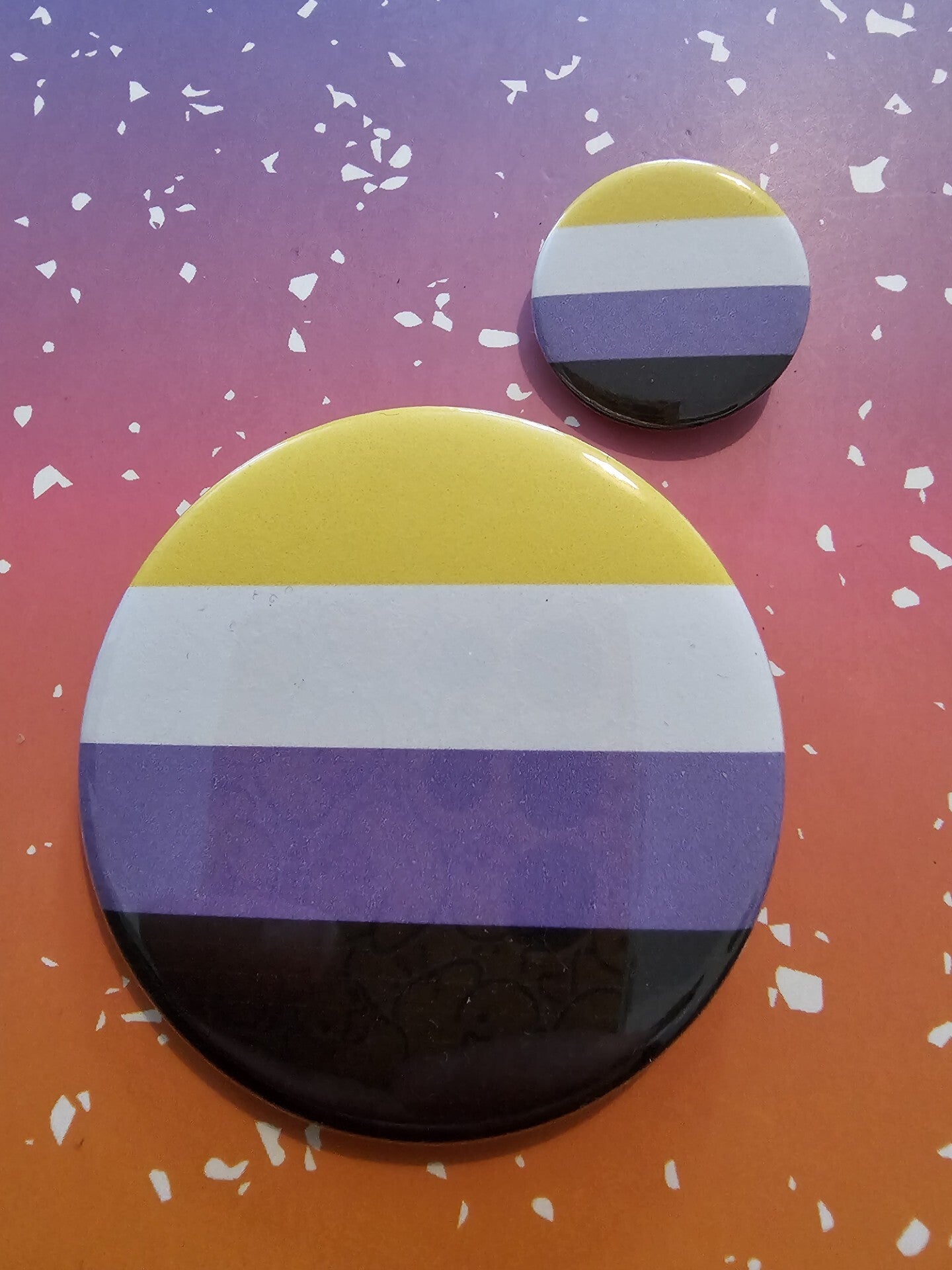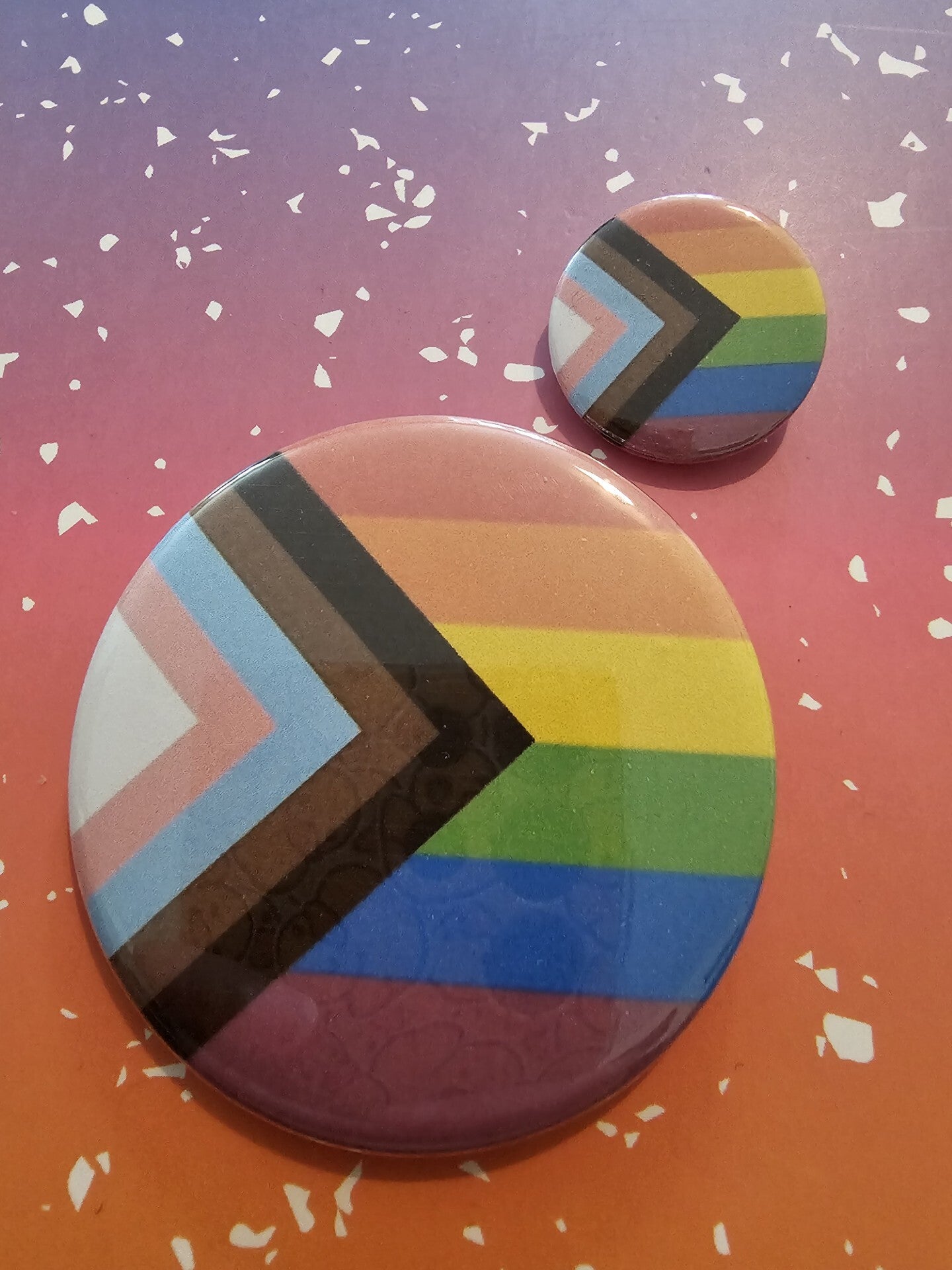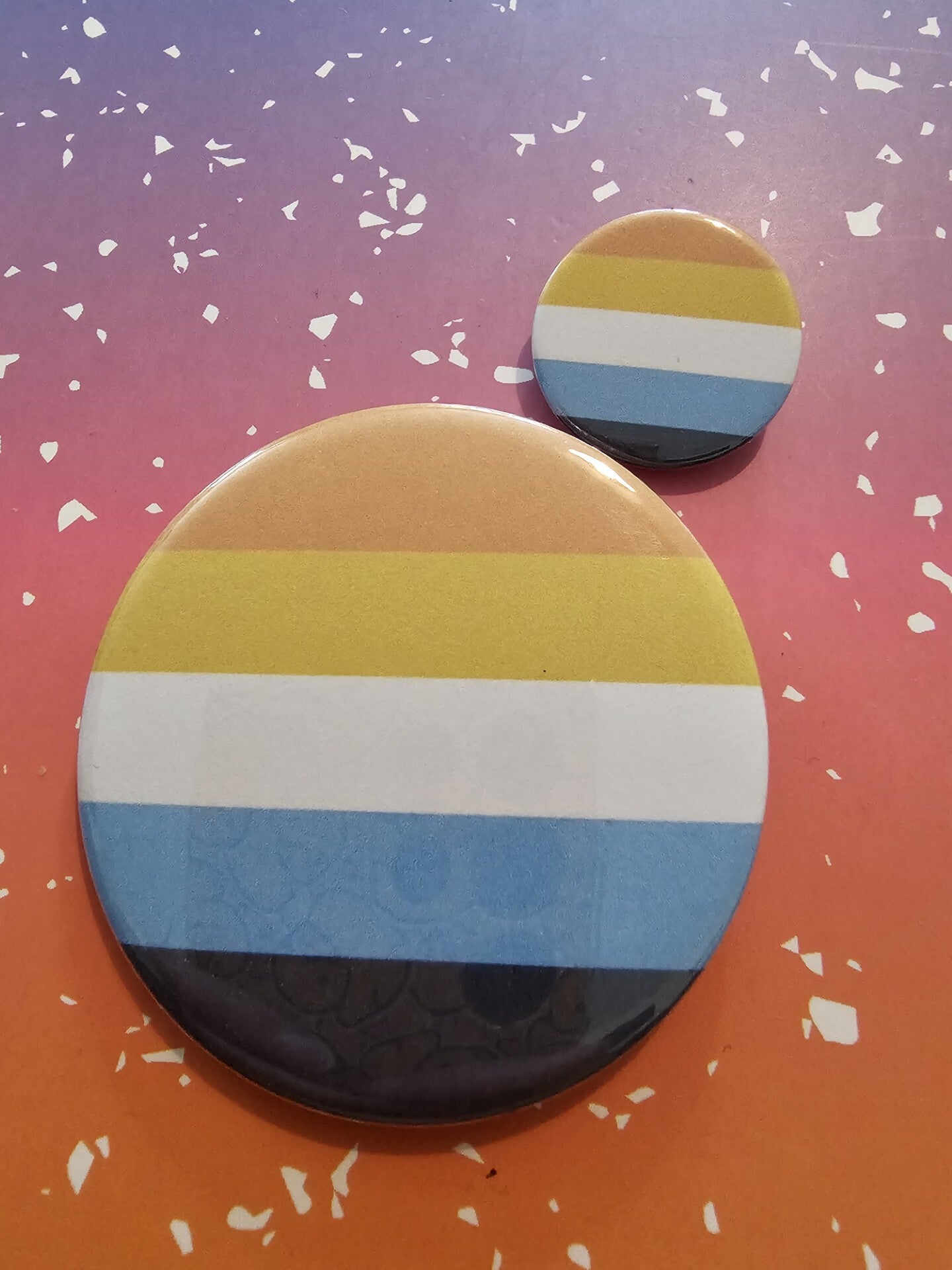 Small in size, big in personality! These round badges are the perfect way to add a pop of colour and pride to any outfit or accessory. Available in a choice of pride flags listed, but please do get in touch for any others! They’re easy to pin on jackets, bags, hats, or lanyards. Bright, playful, and endlessly mix-and-matchable, these little badges are simple statements that shine wherever you wear them.