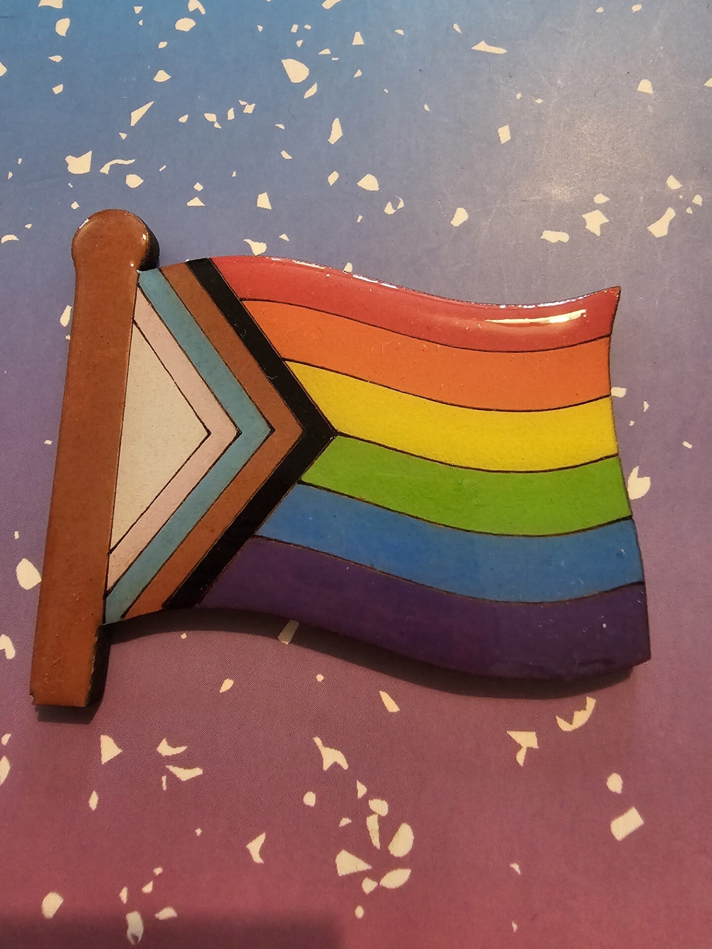 Colourful, quirky, and full of pride. Each wooden magnet is carefully hand-painted in your chosen flag design, then finished with either smooth glossy resin or glittery resin for a sparkling twist. Strong enough to hold its place and bright enough to catch the eye, it’s a cheerful way to bring a splash of pride to your fridge, board, or any magnetic surface.